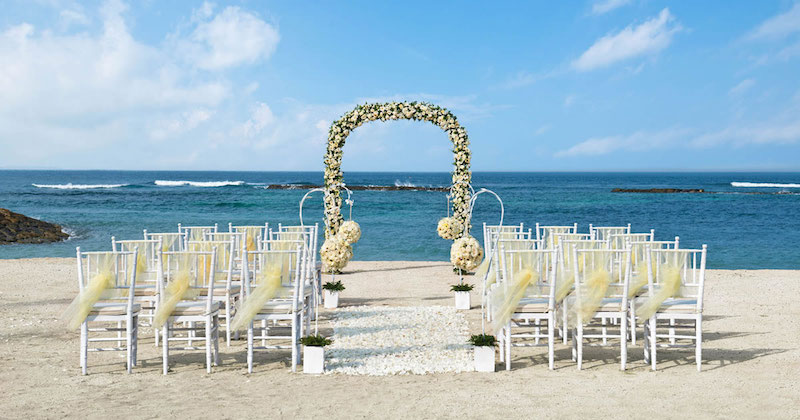 Saturday, 7 October 2023 at the beach area of Nusa Dua Beach Hotel at 16:20 ’til drop. Please be on time since the wedding blessing will start at 17:00 sharp.